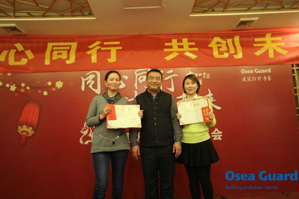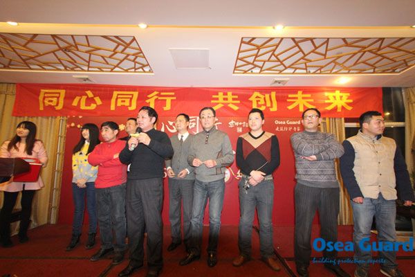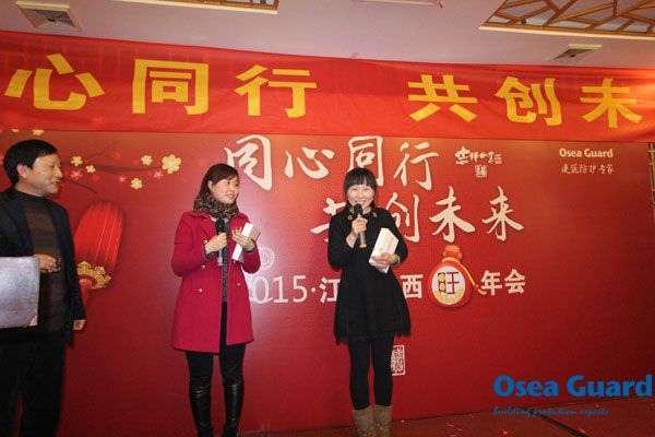 2015年2月12日,江蘇歐西“同心同行,共創(chuàng)未來—2015年江蘇歐西旺年會”在洪澤湖國際大酒店成功舉行,江蘇歐西全體員工江蘇省防水協(xié)會相關(guān)領(lǐng)導(dǎo)、歐西代理商等歡聚一堂,喜迎羊年。
