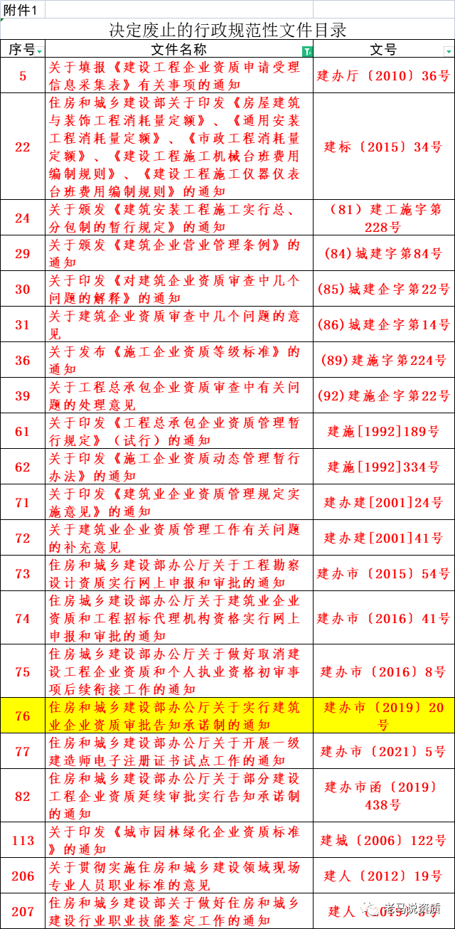 剛剛,住建部發(fā)布《住房和城鄉(xiāng)建設部關于廢止和宣布失效部分行政規(guī)范性文件的公告》,其中指出:廢止文件:《住房和城鄉(xiāng)建設部辦公廳關于實行建筑業(yè)企業(yè)資質(zhì)審批告知承諾制的通知》(建辦市〔2019〕20 號)