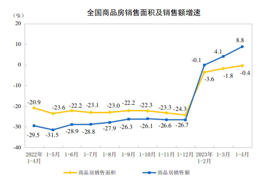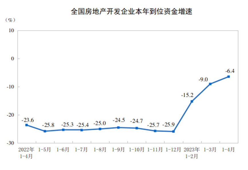 4月末,商品房待售面積64487萬平方米,同比增長15.7%。其中,住宅待售面積增長15.4%。