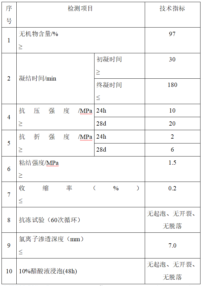 4. 具有快硬特點(diǎn),可用于快速搶修工程。
